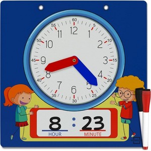 Teach kids to tell time with ease using the Learning Clock 13"x13" Dry Erase Write & Wipe Demonstration Clock. This oversized teaching clock is designed for classrooms, homeschooling, and group activities, making it the perfect tool for helping students master both analog and digital time. The large 13"x13" size ensures visibility from anywhere in the room, while the bright, kid-friendly design keeps learning engaging.