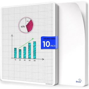 SCRIBBLEDO Small Grid Dry Erase Sheets 9"x12" Reusable Graph Whiteboard Sheets for Math Students Classroom Teachers - 10 Pack