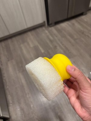 [This review was collected as part of a promotion.] This is pretty nifty handle. I think it’s cute and basically gets the job done. I think if you have a light scrubbing job to do with not super hot water then it’s great. If you have a tough job with hot hot water needed, the sponge falls off the handle. I think maybe if they had something to clip it on or hold it, it would be better
