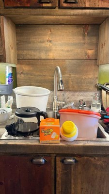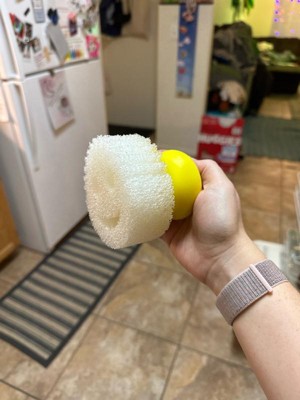 [This review was collected as part of a promotion.] I love scrub daddy products, and this one scrubs and cleans like a dream! The problem is that the handle is constantly falling out of the sponge, so it's basically useless with the handle. But the sponge itself still works like a dream so my rating is more for that!