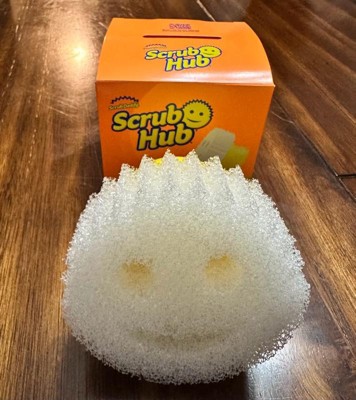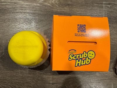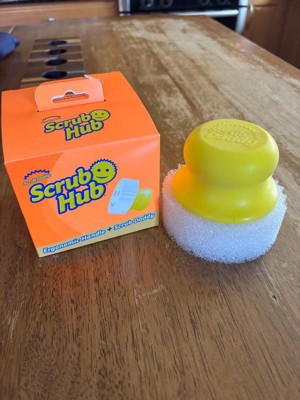 [This review was collected as part of a promotion.] The scrub hub is great for cleaning large dishes, surfaces, and the sink/bathtub. It’s pretty simple at it’s just the yellow rubber piece and the scrub mommy which just slips on. However, it isn’t held on by anything but the holes so it does slip off and you have to almost hold in on while washing if you’re holding any direction besides down and especially when it’s more worn down and not as stiff.
