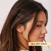 Keep every hair in place with this 50-pack of shiny metallic-finished Bobby Pins. Keep a supply at home, school, office, or at the gym. 25 light brunette and 25 dark brunette pins.