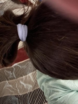 [This review was collected as part of a promotion.] I have been using these hair ties for quite a while. The colors are so pretty and the material is so soft. It doesn’t tangle the hair and it holds my ponytail so well.