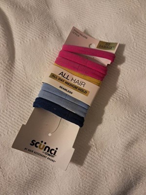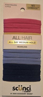 [This review was collected as part of a promotion.] The Scunci All Hair Pink Hosiery Hair Ties 12pk - No Damage were just okay. I didn't like them as much as my usual brand of hair ties. I think the Scunci Hosiery Hair Ties need more structure to them as they slide out of my hair too easily. I did like the variety of colors though.