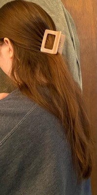 [This review was collected as part of a promotion.] This is the perfect size clip for when you wanna throw your hair up bc you’re multi tasking throughout the day and don’t want your hair in the way! It’s neutral so it goes with everything and it clips nicely and is good quality so it doesn’t pull your hair when you take it out and it’s not difficult or resistant when you open and close it! It’s silent when you clip it too! It also looks nice as a date night clip too