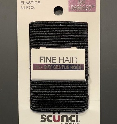 Perfect for fine hair, this 34-pack of small, black No Damage® elastics makes it easy to take control of your look, without pulls or snags. They hold hair perfectly in place yet they’re so comfy, you forget you’re wearing them!