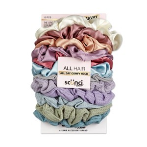 Savvy Value! You can never have enough scünci scrunchies, and 12 is way better than one! This 12-pack offers soft pinks and neutrals in both silky and waffle knit fabrics. Wear more than one scrunchie at a time for a multidimensional look. Give your style a textured twist with The Original Scrunchie® from scünci!