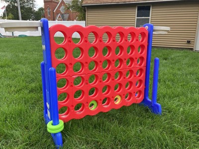 [This review was collected as part of a promotion.] This giant connect four is so much fun! Perfect for my 6 and 7 year old. The game was easy to put together and took no time at all. Kids spend hours playing. Perfect for indoor and outdoor use.