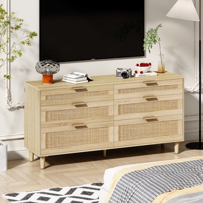 High quality material:Our wooden dresser is made of high-quality chipboard, and the rattan box of the drawer is environment-friendly and smooth. The smooth guide rail can easily pull out and close the drawer.