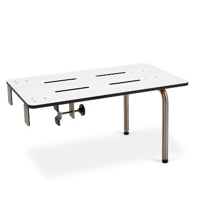 This contoured seat fits perfectly in any corner bath or shower to provide secure, space-saving seating. It is a versatile corner seat that can be used in multiple ways to accommodate best in a shower or tub. The corner shower seat is 26.5" L x 16.5" W x 2.5" H with an 18" radius that supports up to 250 lbs. and meets ADA code requirements when properly installed. It is proudly made in the USA with 100% recyclable material and LEED compliance.