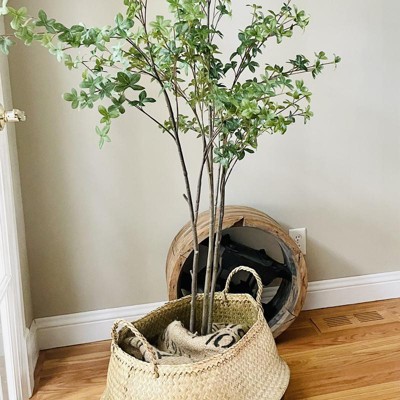 - A boho-inspired storage basket that can add some texture and charm to any home décor, especially in the living room, bedroom, or bathroom