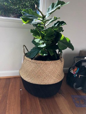 Storied Home Seagrass Basket with Handles 11.5" x 19" Natural/Black: Handwoven, Renewable, Circular Storage for Plants