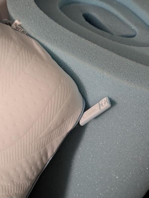 [This review was collected as part of a promotion.] This pillow is so comfortable! The case it comes with is soft, machine washable, and actually stays cool! The foam from both pillow and topper form to many sleeping positions to keep you sleeping well. They both did take a full day to fluff up to normal from shipping, and the packaging left a smell for a few days. The topper is thick enough to feel a difference but thin enough for fitted sheets to still fit over top.