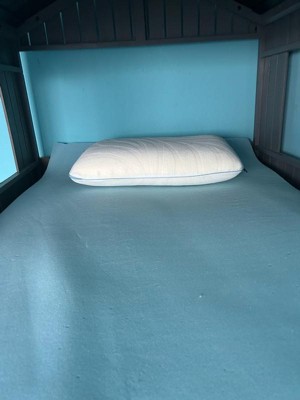 [This review was collected as part of a promotion.] This mattress topper and pillow are nice, fit the bed well, and seem very sturdy. However, the mattress topper is very squishy, so it adds no real support for your body. The pillow is also squishy, and has a little more support than the mattress, yet not stiff like some memory foam pillows.