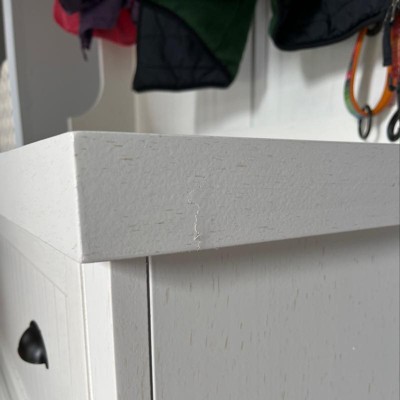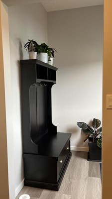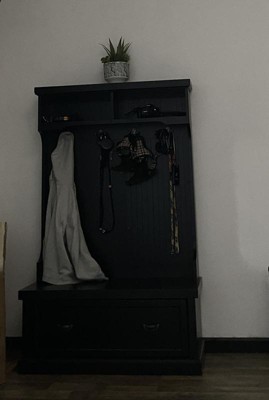 Q: Is the bottom part of this hall tree a drawer? Or does it open to divided cubbies?