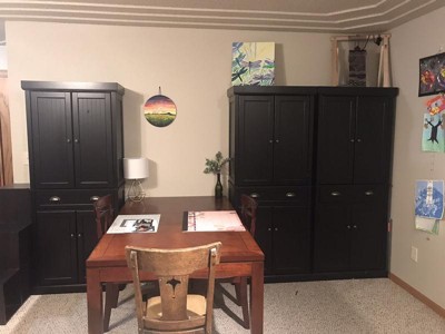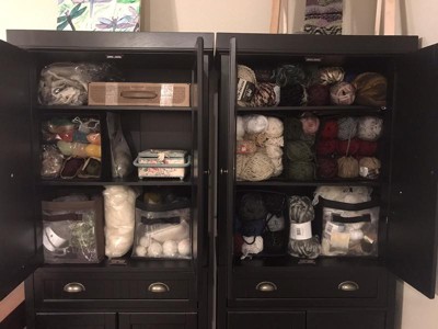- Two large cabinets with double doors and magnetic closures
