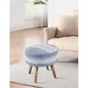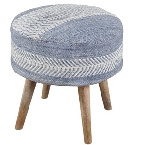 Handwoven fabric is wrapped around the stool. Mango Wood legs.Color: BlueColor Details: Shades of Indigo Blue with White Stripes.Made in India.Handwoven and Made in India by local artisans.Ships pre-assembled.