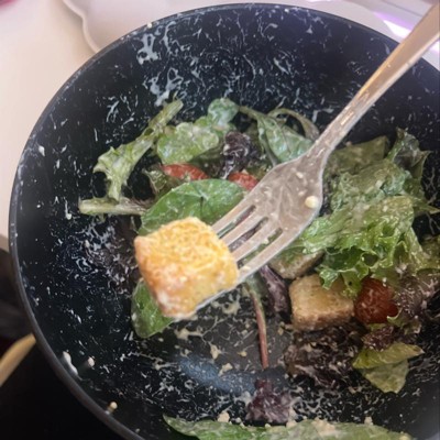 The croutons are very hard and not crispy. They didn't have enough seasoning.