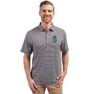 Seattle Mariners Cutter & Buck Forge Eco Double Stripe Stretch Recycled Mens Polo - Navy Blue/White - Medium - 1 of 1