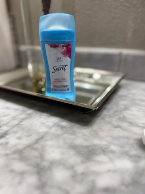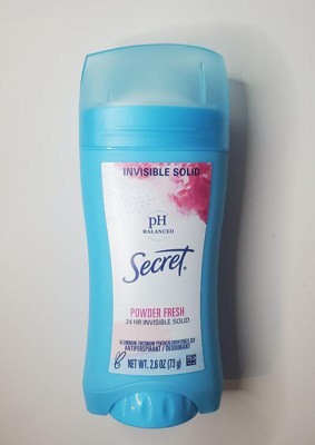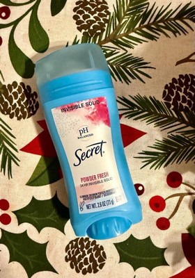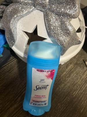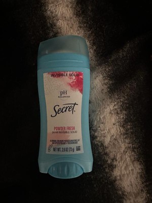 [This review was collected as part of a promotion.] Secret Invisible Solid Powder Fresh deodorant is ph balanced and smells like baby powder. The antiperspirant reduces underarm wetness and odor for up to 24 hours. Absorbs quickly leaving no residue. Highly recommend. It’s strong enough for a man to use.