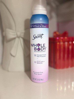 Secret Whole Body Deodorant Spray - Lilac & Waterlily - Aluminum-Free 3.5oz