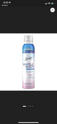 Sweat happens everywhere, but with Secret, stink doesn't have to. Say goodbye to multiple daily showers, with Secret Whole Body, you can smell better everywhere from your pits to your privates and more! Our Secret Whole-Body Deodorant was created to use on your underarms, underboobs, thighs, privates, feet and more! Secret Whole Body is also Dermatologist tested, so you don't have to try it out and hope for the best. It's aluminum free, free of dyes, parabens, phthalates and is made to be gentle on skin.