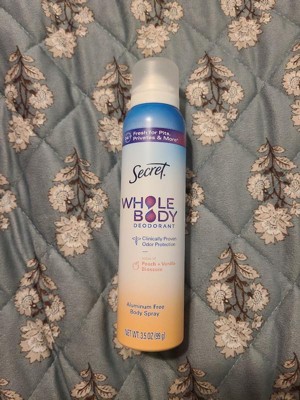 Secret Whole Body Deodorant Spray - Peach & Vanilla - Aluminum-Free 3.5oz