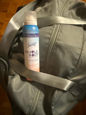[This review was collected as part of a promotion.] New gym bag staple. Secret whole body cooling spray will be clutch in the warmer months. Its a nice deodorant and has an effect spray bottle design which makes it easy to reach your whole body. The peach was a little strong but I would try again in another scent!