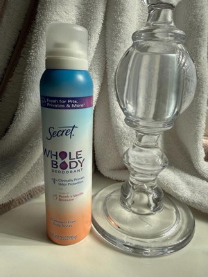😍Obsessed! Thank you for your review of Secret Aluminum Free Whole Body Spray Peach & Vanilla🍑