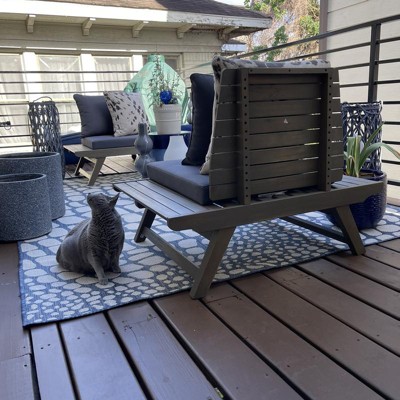 Got these to sit in while reading a book and enjoying a cocktail on the deck in the summer. The little ledges are perfect and the chairs are comfy. Assembly was ok--some of the holes weren't lined up right on the second chair, but they've been out on a sunny deck for a couple of months now and still look brand new.