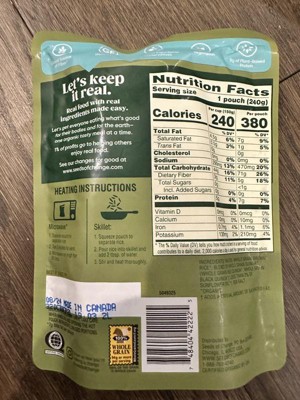 [This review was collected as part of a promotion.] I absolutely love how easy these pouches are!! A mom of 2 littles here, and while these are for me, I appreciate how it doesn't take a long time or a lot of prep. You pop these Into the microwave or into a pan on the stove, and it quickly heats. I can pair this with some black beans and spices for a decent meal that needs to be quick or for bites between feeding the kiddos. There is a decent amount of fiber and protein in this little pouch alone which is awesome! There is a touch of saturated fat and you'd want to be careful with the sodium content, but it can be a decent option that tastes good (it's slightly seasoned, hence the sodium), is quick to heat, shelf stable, and holds some nutritional value. I'll be buying more of these to keep on hand!