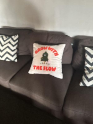 This pillow has been amazing to lay on. It’s soft, fluffy and very comfortable. My couches are brown and I feel that it fits quite well with our overall decorations. I appreciate the message as well as I peep it during the rough moments