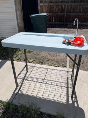 SEEK Outdoor Portable Folding Deluxe Fish and Game Cleaning Table with Faucet, Sprayer, Drain Hose, and Shelf for Fishing, Hunting, and Camping Gear,