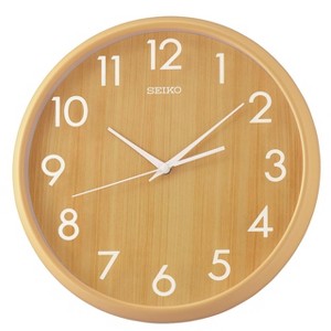Bring warmth and timeless charm to your home with the Seiko Wall Clock. Designed with smooth curves and a faux natural wood finish, this 12inch clock adds a touch of softness and elegance to any space. Available in your choice of light brown or dark brown, with numerals, it blends seamlessly with both modern and traditional décor. Easy to read and powered by Seikos reliable quartz movement, this clock offers beauty, accuracy, and versatility perfect for kitchens, living rooms, offices, or bedrooms. Powered by 1 AA battery (included). Overall dimensions 12 x 12 x 1.9 inches. Quartz crystal movement allows for the most accurate time keeping.