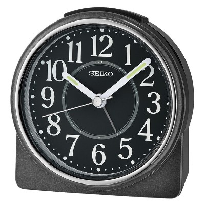 Stay on schedule with this alarm clock. The 4 Inch Seiko Alarm Clock features a colorful case with a plastic cover. The beep alarm comes complete with a light, snooze function, the quietsweep second hand eliminates ticking, and luminous hands. Perfect for any space. Powered by 1 AA battery (included). Overall dimensions: 3.9 X 4.4 X 1.8 inches. Quartz crystal movement allows for the most accurate time keeping.