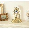 The Seiko Deck and Table Gold Tone infuses a hint of luxury with its goldtone body. Its rich appearance, coupled with a stainless steel construction and quartz movement mechanism, makes it both visually and functionally appealing. This wall clock also has artistic hands pointing to roman numerals that further accentuate its fine contours. A rotating pendulum and the dome shaped glass casing also add to its beauty and reflect exquisite taste. Powered by 1 AAA battery (included). Overall dimensions: 9.3 X 7 X 6.3 inches. All Seiko clocks are equipped with quartz movement making it the most accurate at time keeping.