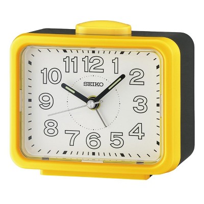 The Seiko Bedside Alarm by Seiko features a brightly colored case sure to wake you up. The quiet sweep second hand moves continuously, eliminating annoying ticking sounds and allowing worryfree use in all quiet spaces. LumiBrite tipped hands for easy read in the dark. When fully charged, LumiBrite glows in the dark hours longer than conventional luminous. Powered by 1 C battery (included). Overall dimensions: 3.4 X 4.3 X 2.5 inches. All of this along with the most accurate quartz crystal movement Seiko has to offer an analog clock. Perfect for tween to adult.