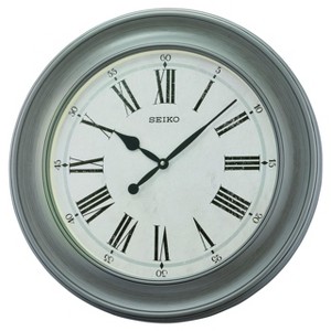 The Seiko Wall Clock is an oversized large 22 inch classic wallmounted clock features an oversized round wide frame. The vintage design fits perfectly in with any home decor. The large numbers are easy to read from any angle. Choose from brown with numerals or grey with Roman numerals. Powered by 1 A battery (included). Overall dimensions: 22 X 22 X 1.9 inches. Quartz crystal movement allows for the most accurate time keeping. Perfect for the kitchen, family room or any living space.