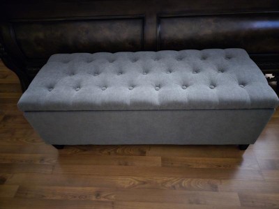 [This review was collected as part of a promotion.] I absolutely adore this storage bench! It’s sturdy enough that you can sit on it but also has plenty of space to store your items. It was super easy to assemble. I use this at the foot of my bed to store blankets and pillows. I love that it matches my decor perfectly!