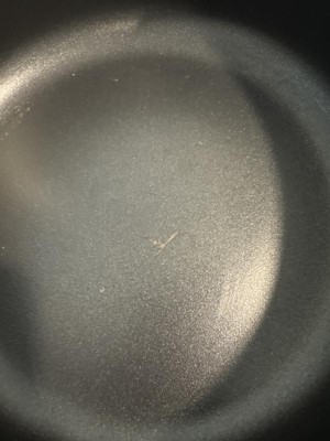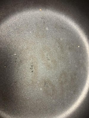 A: Hello, thank you for your inquiry. Our Select by Calphalon® Space-Saving Hard-Anodized Nonstick 9-Piece Cookware Sets are made with water-based nonstick and a hard-anodized exterior, it's dishwasher-safe for quick cleanup. If you are experiencing peeling on the bottom of the small frying pan, it could be due to several factors: Overexposure to Heat: If the pan is exposed to high heat cycles in the dishwasher, it might cause the coating to degrade or peel. Certain dishwasher detergents can be too abrasive or contain chemicals that affect nonstick coatings. The cookware might be banging against other items in the dishwasher, causing physical damage to the coating. To prevent further damage, you might want to: Hand wash your nonstick cookware with mild detergent and a soft sponge. Avoid using harsh cleaning agents or abrasive scrubbers. Ensure the cookware is properly arranged in the dishwasher to prevent it from bumping against other items. If this does not help, please contact us via our official website "Contact Us" page. We’re available Mon.-Fri. 9 am -5 pm Eastern Time and we will be happy to assist you. Thank you and please stay safe! Calphalon Consumer Care