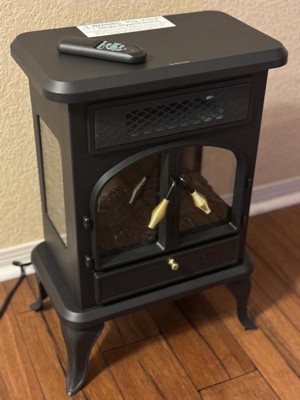 [This review was collected as part of a promotion.] Well, this came just in time for all this nasty cold, wet weather! So easy to put together. Just add 4 legs and you have the option to add a screw to each leg for better support. Remote requires 2 AAA batteries but there’s a nice panel at the front bottom with all your buttons, as well. Create simple ambiance or add some heat! You can adjust the temperature 60 and up. Overall so darn cute! Looks like an authentic old fashion stove. Plenty of warning labels to for adults to keep their kiddos and pets safe! My husband and I love it!!