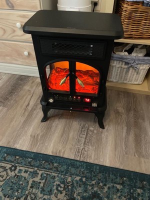 [This review was collected as part of a promotion.] I was actually impressed with this little faux wood stove space heater. It worked well in the tiny space we needed it for. I wouldn’t imagine it could really heat anything over a 12x12 foot room. But for what we are using it for it works. And the fact that it’s not an ugly radiator type heater or something that’s unattractive is a bonus. Gives the space the “cozy cabin” vibe we were looking for while heating it up nicely. I’d definitely recommend!