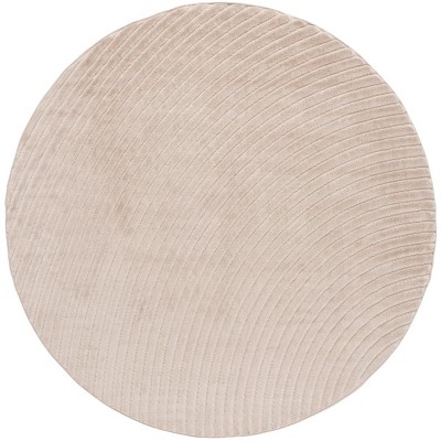 The rug is sculpted with a plush pile height of 3/8", offering a luxurious underfoot feel that complements its sleek design. Ideal for anchoring living spaces or adding a touch of elegance to bedrooms, the round shape of this rug promotes a sense of harmony and balance within your home.