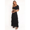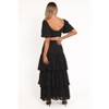 Designed for a perfectly coordinated look, this two-piece set features a cropped top with an overlay V-neckline and short sleeves enhanced with elasticized cuffs. The high-rise midi-length skirt exudes elegance, complete with a drop-tiered ruffle detail that creates delicate movement.