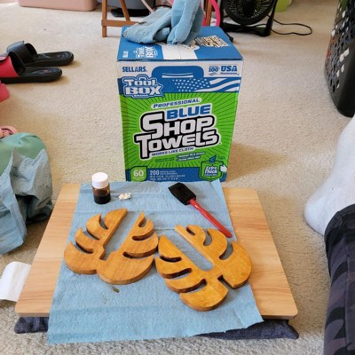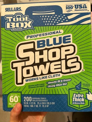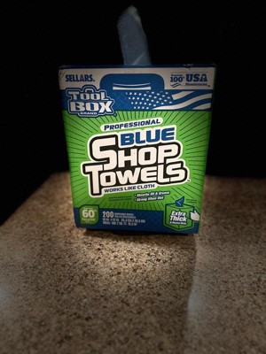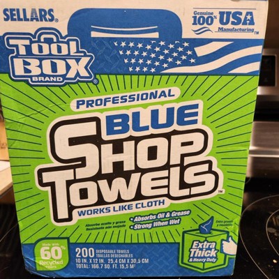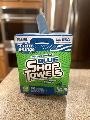 [This review was collected as part of a promotion.] Sellars Tool Box brand Professional Blue Shop Towels in the Extra Thick & Heavy Duty 200 count variety are fantastic shop towels. My dad was a mechanic for my whole life, so I grew up around grease monkeys. Needless to say, I've used shop towels a time or two, growing up. These are great for a couple of reasons. The first is that they are 100% made in the U,S. from 60% recycled materials. The second is that they come in their own dispenser of sorts. I remember rolls of blue shop towels laying all over the garage with greasy hand prints on them, this container alleviates that issue These are every bit as strong and absorbent as the ones I grew up with, so I know they're perfect for any tough job you'll have to use them to tackle. My only complaint would be that they're a bit rougher than the ones I recall using growing up. The texture is a bit more dry and less spongy, but that actually may make them tougher on messy projects. These were a great try - I'd highly recommend them if you need some great shop towels!