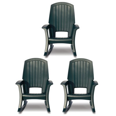 These large 19 by 19-inch rocking chairs with seat bases, large backrests, and big armrests support up to 600 pounds. The rugged dovetail-joint design breaks down into 4 pieces for easy storage or travel. Easy to assemble, you'll relax in minutes anywhere you take these rockers. Its rugged, high-density polyethylene plastic construction withstands any elements, resisting extreme moisture, temperature, and sunlight. These outdoor rocking chairs look great and are easy to clean. Assembled, these rockers measure 30 inches long, 21 inches wide, and 42 inches tall, making them a great chair to sit on and greet friends and neighbors on your porch.