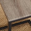 - Black metal frame with a reclaimed wood-like tabletop