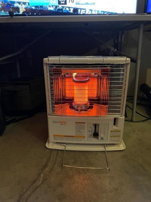[This review was collected as part of a promotion.] I got this heater for my basement, which is also my garage, where my friends and I watch the Sunday football games and basketball games during the winter. This heater heats up the entire basement and the garage with no problem on the low setting and it also runs for a long period on a tank of kerosene. Works outstanding
