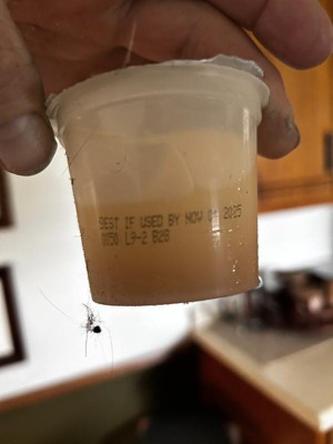 I just bought this 4 pack and its expiration date is still 2 months away. One of the cups had mold in it. I have a severe allergy to mold! Thank goodness I saw it! I’m concerned about the quality control of the product temperature and packaging to avoid the mold.