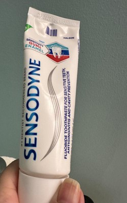 This is my favorite brand of toothpaste! Give it a couple of uses and it will make your teeth less sensitive. It's hard to go back to other brands when this works so well! It is pricey for toothpaste but with how well it works, I'll keep buying it! This is extra fresh complete protection. I like a strong minty flavor so I'm a little disappointed with the extra fresh part because it's really not that minty but if you don't care for mint, it's a plus! This toothpaste does have fluoride so if you're looking for no fluoride, this is not for you! The toothpaste comes in a long white box with the large words sensodyne written in blue across it. It is an anti cavity and protects your pearly whites!